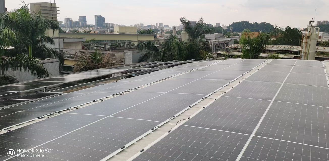 广州番禺工厂位于沙湾珠宝产业园,每年电能消耗100万左右,工厂为了践行绿色低碳工厂理念,与2022年投资建设屋顶光伏发电,最大限度使用太阳能绿色电力。